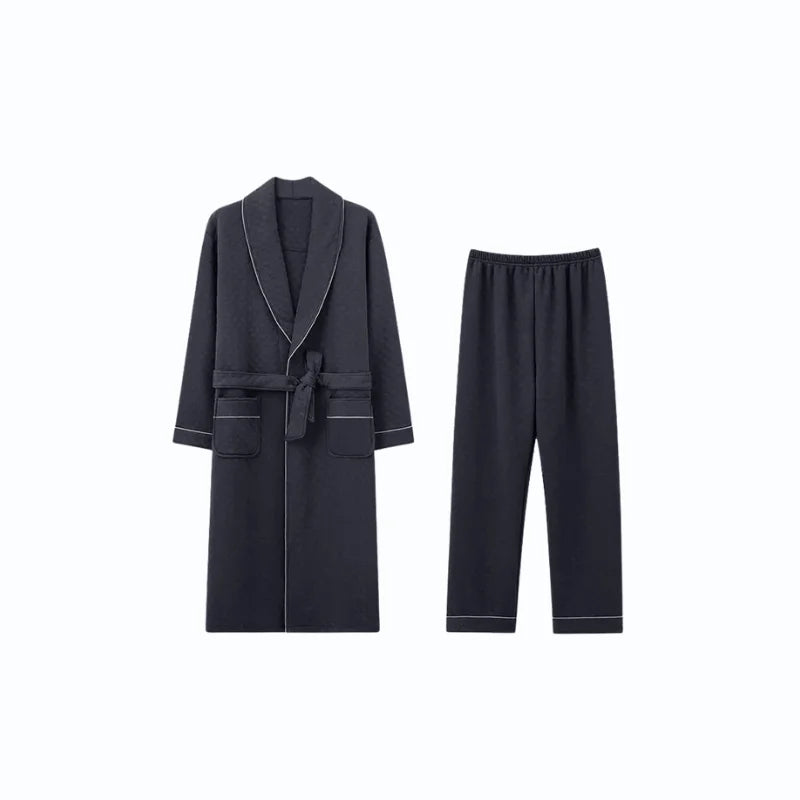L'Ensemble Pyjama - Peignoir Homme comprenant un peignoir et un pantalon assorti, redéfinit le luxe du cocooning.