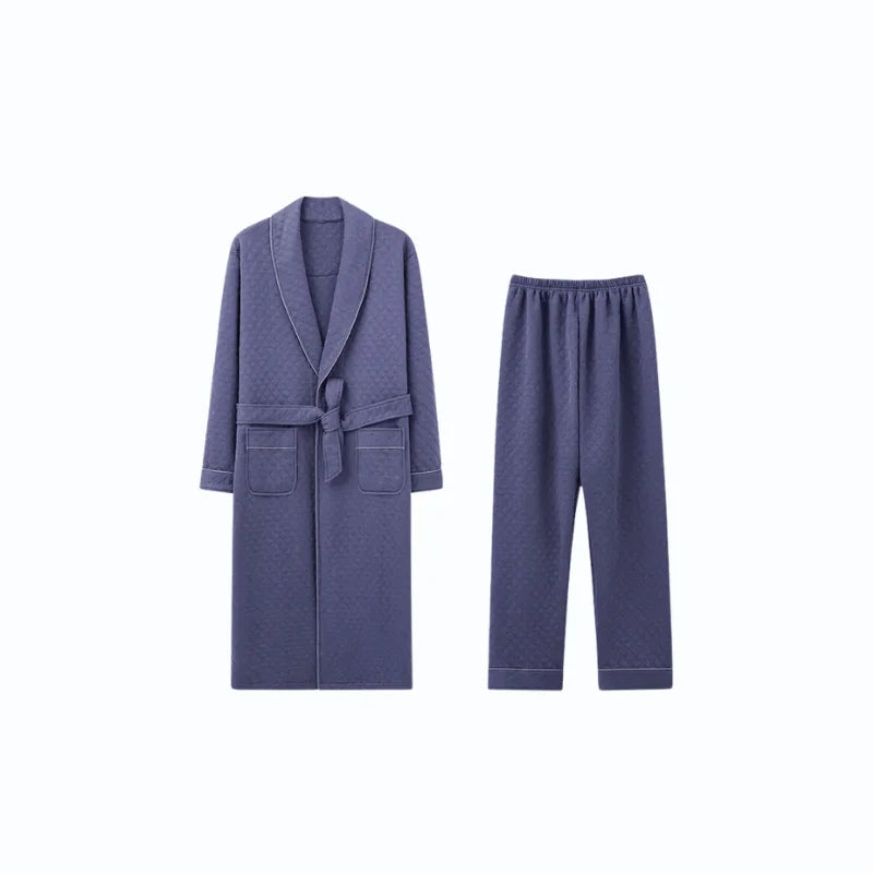 L'Ensemble Pyjama - Peignoir Homme comprenant un peignoir et un pantalon assorti, redéfinit le luxe du cocooning.